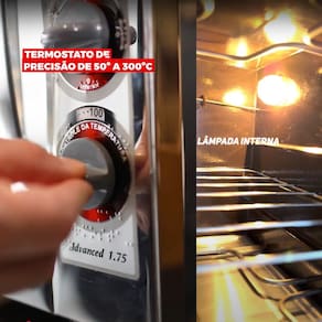 Gabinete externo em aço inoxidável; Gabinete interno com revestimento easy - clean; Frontal em aço inoxidável; Puxador em aço inox; Porta removível de vidro cristal temperado; Isolamento térmico (lã de rocha); Lâmpada interna com vidro protetor.Forno autolimpante
