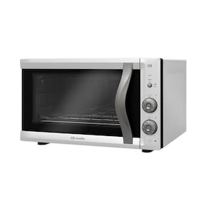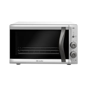 Forno de bancada Mueller com capacidade de 50 litros, grill, timer de 120 minutos, variação de temperatura de 50ºC a 300ºC e porta com vidro duplo.Forno autolimpante