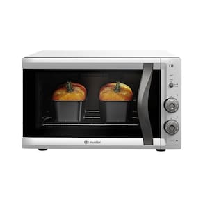 Abertura de porta: Porta com abertura lateral. Acabamento do interior do forno: Total Clean. Bandeja para resíduos: Removível com acabamento esmaltado. Dourador Grill: Sim. Luz Interior: Sim. Material: Frontal em termoplástico. Material do corpo: Chapa de Aço Pintada. Prateleiras: 01 prateleira com três níveis de altura. Timer: Timer de até 120 minutos com aviso sonoro. Tipo de controle: Botões de Acionamento Manual. Tipo de forno: Forno Elétrico de Bancada. Variação de temperatura mínima/máxima: 50ºC a 300ºC. Vidro da porta: Vidro duplo.Forno autolimpante
