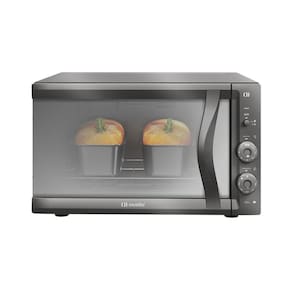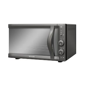 Forno de Bancada Mueller 50 litros com Grill Espelhado MFB50F. Abertura de porta lateral. Acabamento do interior do forno Total Clean. Bandeja para resíduos removível. Dourador Grill. Luz Interior. Material frontal em termoplástico e corpo em chapa de aço pintada. Prateleira com três níveis de altura. Timer de até 120 minutos com aviso sonoro. Botões de Acionamento Manual. Variação de temperatura de 50ºC a 300ºC. Vidro da porta duplo.Timer
