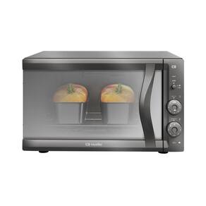Forno de Bancada Mueller 50 litros com Grill Espelhado MFB50F. Possui abertura de porta lateral, acabamento interno Total Clean, bandeja para resíduos removível, dourador Grill, luz interior, material frontal em termoplástico e corpo em chapa de aço pintada. Conta com 01 prateleira com três níveis de altura, timer de até 120 minutos com aviso sonoro, botões de acionamento manual e variação de temperatura de 50ºC a 300ºC. Vidro da porta duplo.Timer