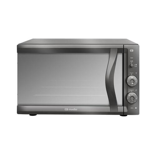 Forno de Bancada Mueller 50 litros com Grill Espelhado MFB50F. Abertura de porta lateral. Acabamento do interior do forno Total Clean. Bandeja para resíduos removível. Dourador Grill. Luz Interior. Material frontal em termoplástico e corpo em chapa de aço pintada. Prateleira com três níveis de altura. Timer de até 120 minutos com aviso sonoro. Botões de Acionamento Manual. Variação de temperatura de 50ºC a 300ºC. Vidro da porta duplo.Timer