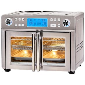 Descubra o Forno de Convecção e Fritadeira Emeril Lagasse French Door 360, o versátil eletrodoméstico que eleva praticamente qualquer refeição, desde petiscos rápidos fritos no ar até assados para grandes encontros. Inclui um acessório de pedra de pizza para resultados crocantes estilo restaurante. Com 24 configurações de cozimento para uma variedade de métodos de preparo: Costelas, Descongelar, Assar, Tostar, Frango, Pizza, Pastelaria, Cozimento Lento, Assar, Reaquecer e Manter Aquecido. Ventilador de Dupla Velocidade para uma fritura dourada perfeita com circulação de ar aquecido a 360 graus. Com presets de cozimento para fritar, torrar, rotisserie, assar, grelhar, cozinhar lento, desidratar e muito mais. Este não é apenas um forno elétrico. É um combo de fritadeira e forno de convecção de porta francesa, combinando 10 utensílios de cozinha em um só. Com zonas personalizadas e presets duplos, garante que cada prato seja uma obra-prima. Com a tecnologia QuickSync, sincronize tempos de cozimento e configurações entre as zonas para que cada parte da sua refeição termine simultaneamente, garantindo porções frescas e quentes. Com espaço generoso e capacidade grande de 23,66 litros, alimente sua família ou festa! Inclui uma pedra de pizza para resultados crocantes. Acelere seus pratos culinários em até 60, tornando as festas mais rápidas. Com o forno de convecção e fritadeira Emeril Lagasse, vá de alimentos congelados a pratos tentadores em minutos. Imagine transformar camarões congelados em scampi saborosos em apenas 10 minutos, sem descongelamento prévio.