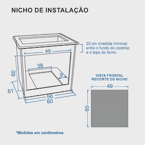 Características do Produto: Acendimento: Automático Válvula de Segurança: Sim Botões: Removíveis Luz no Forno: Sim -Lâmpada não acompanha o produto- Revestimento do Forno: Esmalte Easy Clean Temperatura: 5 posições de 180°C até 290°C Função Grill: Sim Timer Grill: Sim Timer Gás: Não Prateleira do Forno: Duas Deslizantes Espeto Giratório: Não Bandeja Coletora de Resíduos: Não Grade de Ventilação: Integradas na Saia e Painel do Produto Porta removível: Sim Porta do Forno: Vidro Panorâmico Vidro Duplo na Porta: Sim Puxador da Porta: Aço pintado Entrada de Gás: Dupla -Reversível- Tipo de Gás: Gás GLP -A conversão para Gás Natural não é coberta pela garantia- Tensão: 127V ou 220V Frequência: 60Hz Classificação Energética: ?A? Etiquetas: ENCE e CONPET Potência Grill: 700W Potência Queimador: 1,65kW Dimensões Internas do Produto -LxPxA-: 378x470x290 -mm- Volume do Forno: 51,8 L