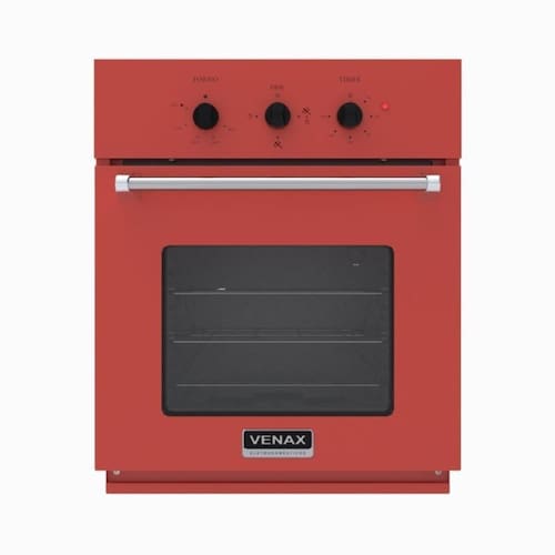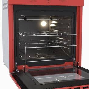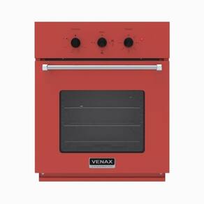 Forno de embutir a gás com volume de 51,8L, espeto giratório, grill a gás, porta removível com visor, grade de ventilação embutida e bandeja coletora de resíduos.Timer