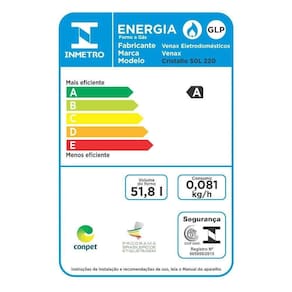 Forno de Embutir a Gás GLP 50 L Cristallo GIII Venax - Especificações TécnicasTipo de Gás: Gás GLP (A conversão para Gás Natural não é coberta pela garantia)