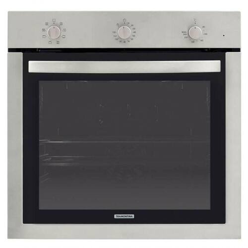 Modo de Uso: Recomenda-se que a instalação do forno seja feita pela Rede de Autorizado Tramontina. Uso doméstico. A superfície para instalação deve estar nivelada e suportar um peso de até 70 kg. É indispensável que a parte traseira do móvel de instalação deva ser aberta para garantir uma boa ventilação. Nunca suba ou sente na porta do forno. Não utilize o puxador frontal para levantar o produto. Os painéis do móvel devem ser feitos de material resistente ao calor. Os armários com exterior em verniz, em particular, devem ser montados com colas que suportem temperaturas de até 100C.