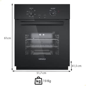 - O Forno de Embutir Venax Totale Nero GIII une elegância e eficiência com seus 50L de capacidade, ideal para quem busca alto desempenho e economia no preparo de pratos assados.