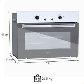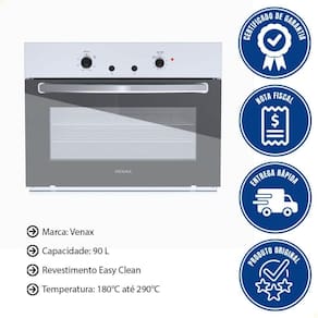 - O Forno de Embutir a Gás Venax Cristallo GIII 90L combina design sofisticado e funcionalidade para elevar sua experiência na cozinha.