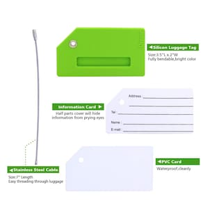 Etiqueta de bagagem de silicone com cartão de identificação perfeita para identificar rapidamente a mala de bagagem da CPACC Usar uma etiqueta de bagagem para ajudar a identificar sua bagagem não significa que ela tenha que ser entediante. A CPACC tem uma nova linha de etiquetas de bagagem de borracha longas que são divertidas, fáceis de identificar e ajudam a dar um pouco de personalidade à sua própria experiência de viagem. Basta escrever suas informações diretamente no cartão usando uma caneta esferográfica. Nossa capa de meia parte esconderá completamente suas informações de olhares curiosos. Características: Cor: vermelho, preto Estilo: Design de avião pacote com 2, design de avião pacote com 5, design de dígito nº, 1-5, design de dígito nº, 1-10 Material: Silicone flexível. Dimensão: Tamanho das etiquetas: C 9 x L 5 cm, tamanho do cartão de nome: C 3,4 x L 1,7 cm. Você pode escrever seu nome e endereço no cartão de visita, para facilitar a identificação de sua bagagem de outras pessoas. Feito de silicone de qualidade, capaz de dobrar sem quebrar, tamanho pequeno e leve, conveniente para carregar. Vem com uma corda e um conector de parafuso para conectar sua bagagem de perto. As cores brilhantes ajudam você a escolher sua bagagem à primeira vista, então não se preocupe em levar a bagagem por engano. Durabilidade e forte – torna a viagem mais fácil, segura e segura Conteúdo da embalagem: Cada etiqueta inclui: caixa de etiquetas de bagagem de silicone + cordão de aço inoxidável + papel em branco + capa de PVC na frente do papel. Garantia de satisfação do cliente: Se você encontrar problemas com qualquer produto CPACC, não hesite em entrar em contato conosco, ficaremos felizes em ajudá-lo a resolvê-lo. - Dobrável e flexível: Feito de silicone de qualidade, capaz de dobrar sem quebrar, tamanho pequeno e leve, conveniente para carregar. - Estrutura razoável: basta escrever informações diretamente no cartão usando uma caneta esferográfica. A capa de meia peça esconderá suas informações de olhares curiosos, fácil de identificar suas bagagens. - TAMANHO ADEQUADO PARA BAGAGEM: Tamanho das etiquetas: C 9 x L 5 cm, Tamanho do cartão de nome: C 3,4 x L 1,20 cm - Forte e resistente: os laços de aço facilitam a fixação e remoção e conectam sua bagagem e etiquetas de perto. - Segurança e uso amplamente: com a ajuda do nome na frente, você pode identificar esta etiqueta facilmente. As etiquetas de nome podem ser usadas para malas, bolsas, carros infantis, bagagens, malas de viagem e assim por diante