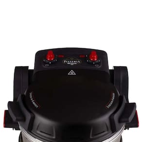 Forno de pizza elétrico duplo com 2 zonas de cocção independentes, cada uma com termostato. Possui 2 pedras refratárias de 32 cm com tratamento antiaderente. Atinge temperatura máxima de 400°C e oferece 5 níveis de cocção. Inclui 2 pás de aço inoxidável.Forno autolimpante