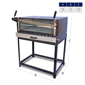 A câmara interna é dotada de três trilhos de apoio, para a perfeita regulagem da altura das esteiras, possibilitando uma personalização da proximidade do fogo.