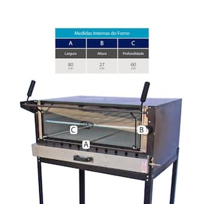 - Forno para pizzas, bolos, pães e similares;- Sistema de abertura total do vidro tipo guilhotina com contra peso;- Bandeja coletora de resíduos em chapa galvanizada super-resistente;- Acompanha uma grade reforçada por câmara;- Queimadores com sistema de gaveta, e aço tubular, com regulador de entrada de ar para uma chama mais perfeita;- Câmara com três trilhos de apoio para regulagem de altura das esteiras;- Isolamento em lã de vidro;- Abertura total do vidro;- Pés super-resistentes e piso em pedra refratária;- Termômetro na lateral do forno.