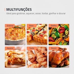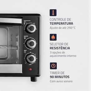 Forno Elétrico Mondial Family II FR-42 Inox com capacidade de 42 litros, timer de 90 minutos, temperatura de 100C até 250C graus e potência de 1600WForno autolimpante