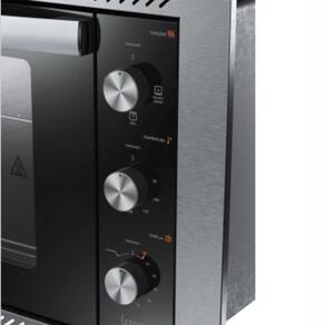 Forno elétrico de embutir Atlas UTop com capacidade de 44 litros, potência de 1750W, timer com desligamento automático, vidro duplo removível, isolamento térmico aprimorado e multifunções.Timer