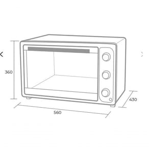 Capacidade de 50 Litros, ideal para grandes receitas. Porta em vidro temperado. Resistência superior e inferior independentes no formato tubular. É possível alternar entre a resistência de cima, a resistência de baixo, ou ligar as duas juntas. Grelha com ajuste de altura e removível. Controle de temperatura de 0C até 230C. Temporizador até 60 minutos. Seleção de função, Assar, Tostar e Gratinar. Luz de funcionamento.
