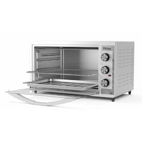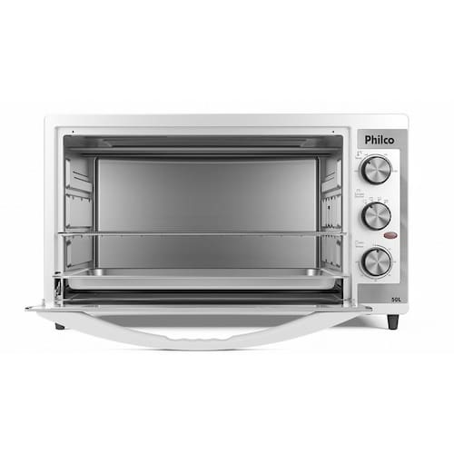 Forno elétrico Philco com capacidade de 50L, função dourar, timer de 60 minutos, grelha de inox com 3 regulagens de altura e resistências superior e inferior com controle individual.Forno autolimpante