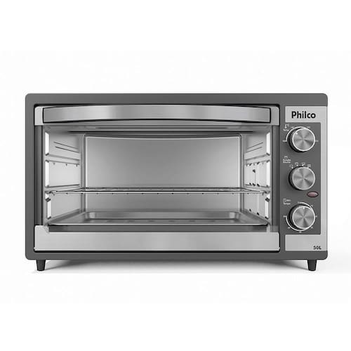 Forno Elétrico Philco 50 Litros, multifunções, com resistências superior e inferior, timer de 60 minutos, função dourar e porta em vidro temperado.Forno autolimpante
