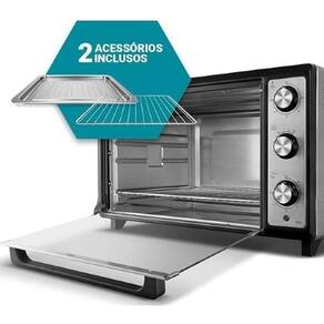Com seus 65 litros de capacidade, este forno elétrico acomoda assadeiras maiores e permite preparar refeições completas para toda a família.