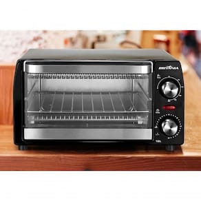 Prepare deliciosas receitas cheias de sabores, texturas e aromas, seus pratos com o toque de profissionalismo que você sempre quis. O Forno Elétrico Britânia 10 Litros é versátil, eficiente e tem um design incrível, ideal para você que preza por qualidade, visual e praticidade. Surpreenda a todos com preparos dignos de um grande chefe sem sair do conforto do seu lar. Com capacidade para 10 litros o Forno é perfeito para o preparo de pequenas e médias porções, sua potência de 1050W trará agilidade e dinamismo, deixando tudo pronto em muito menos tempo. O Botão seletor de temperatura de 90C a 230C é ideal para preparar diversos tipos de alimentos de acordo com a necessidade de cada um. Possui um par de resistências, superior e inferior, com controle individual de temperatura distribui melhor o calor evitando que cocção seja irregular, ou seja, o Forno Elétrico Britânia 10 Litros adapta-se perfeitamente a cada receita. A Função Dourar Deixa os alimentos mais dourados e crocantes. E para você que precisa fazer mil coisas ao mesmo tempo não se preocupe, com o Botão Timer de 60 minutos com sinal sonoro e desligamento automático, basta regular o tempo ideal para cada receita e continuar fazendo as demais atividades sem se preocupar em ficar olhando o forno a cada minuto. Muita praticidade para programar o preparo de cada alimento. Com Luz indicadora de funcionamento você tem sempre a que o aparelho esteja ou não ligado. Sua Porta em vidro temperado permite que tenha melhor visibilidade na hora de preparar os alimentos. O Forno Elétrico Britânia 10 Litros Vermelho acompanha grelha deslizante que facilita o manuseio e acesso ao alimento, além disso, possui Pés antiderrapantes que garantes estabilidade e aderência do seu forno. Traga mais qualidade, versatilidade e praticidade para seu sai a dia, surpreenda a todos com o Forno Elétrico Britânia 10 Litros o e deixe sua cozinha ainda mais bonita e funcional.Características: Material/Composição Composição Metal, Vidro e PlásticoAlimentação Energia EletricaConsumo (KW/h) 1.05Capacidade 10 LitrosPotência (W) 1000WCaracterísticas TimerTipo de Churrasqueira ElétricaTipo de alimentos que comporta Variados tipos de alimentosPode ser levado à mesa SimTempo de cozimento/preparo Varia conforme o alimentoPossui tampa SimCor PretoConteúdo da Embalagem Forno Eletrico, Manual de intruções, Certificado de garantia e Mini folders.Garantia do Fornecedor 12 MesesDimensões do produto (AxLxP) 19,4X35,4X27,1cmPeso lproduto (Kg) 2.7kgMais Informações Luz indicadora de funcionamento