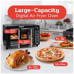 A característica especial de desligamento automático garante segurança e tranquilidade durante o uso. Com dimensões de 31,75 de profundidade, 43,18 de largura e 29,21 centímetros de altura, o Gourmia Toaster Forno Air Fryer Combo se encaixa facilmente na sua cozinha, economizando espaço e proporcionando um toque de elegância com sua cor preta.