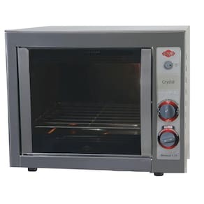 Forno elétrico Crystal Inox Advanced Layr 220V, com termostato de precisão (50 - 300C), resistências blindadas, porta removível em vidro cristal temperado, isolamento térmico em lã de rocha e lâmpada interna com vidro protetor.Timer