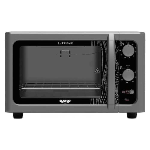 Forno elétrico Dako Supreme com capacidade de 44 litros, grill dourador, potência de 1750W, porta com vidro duplo, termostato automático de 50°C a 300°C e timer de até 120 minutos com aviso sonoro.Forno autolimpante
