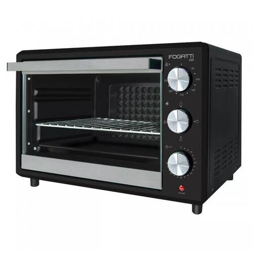 Abertura de porta: Frontal com duplo estágio; Acabamento do interior do forno: Interior antiaderente; Dourador Grill: Sim; Funções: Com 4 funções; Luz Interior: Não; Painel de comando: Botões de Acionamento Manual; Pés: Antiderrapantes; Prateleiras: 01 prateleira com três níveis de altura; Luz: Indicadora de funcionamento.Forno autolimpante