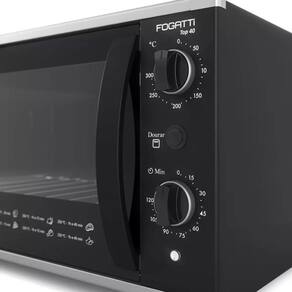 Abertura de porta: Porta com abertura lateral; Acabamento do interior do forno: Interior Easy Clean Esmaltado; Funcionalidade: Controle Automático de Temperatura: Mantem a temperatura escolhida; Painel de comando: Botões de Acionamento Manual; Pés: Antiderrapantes; Luz: Indicadora de funcionamento.Forno autolimpante