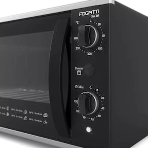 Forno Elétrico de Bancada Fogatti Top 40 com capacidade de 40 litros, termostato regulável até 300ºC, timer de até 120 minutos e dourador (grill).Forno autolimpante