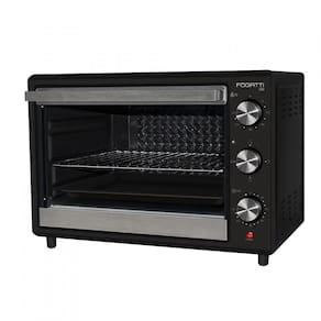 Forno de bancada com capacidade de 50 litros. Possui timer de 120 minutos, termostato até 250°C, bandeja para resíduos, grade interna, luz piloto, grill e dourador. Interior antiaderente.Forno autolimpante