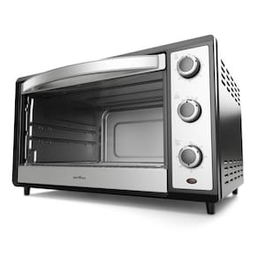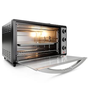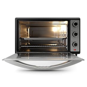 Forno elétrico de bancada com capacidade de 62 litros, dupla resistência (superior e inferior), controle de temperatura ajustável de 100°C a 230°C, timer de até 120 minutos com desligamento automático e sinal sonoro. Possui grelha deslizante com 3 níveis de altura e acompanha bandeja coletora de resíduos. Porta em vidro temperado e luz indicadora de funcionamento.Timer
