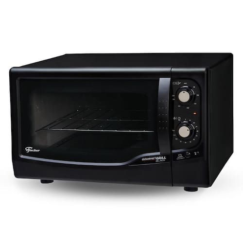 Linha: Gourmet GrillFrequência: 60 HzDimensões AxLxP (mm): 370x575x520Cor: PretoMaterial: Aço Inox e VidroGarantia: 1 ano junto ao fabricanteCapacidade do Forno: 44LComando do Forno: EletromecânicoFunção Dourar: SimIluminação do Forno: 1 Lâmpada InternaPosições da Grelha: 2 NíveisPotência do Forno: 1750WTemperatura Máxima do Forno: 320°CTimer: 0-120minVidros na Porta: 2 Itens inclusos:Forno Elétrico de Bancada Fischer Gourmet Grill 44L Preto