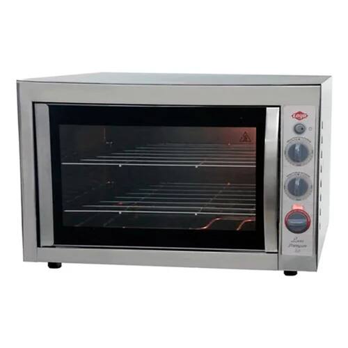 Características: Gabinete externo em aço inoxidável. Gabinete interno com revestimento easy - clean. Frontal em aço inoxidável. Termostato de precisão (50º - 300ºC). 04 Resistências blindadas (2 sup.1500w e 2 inf 1500w). Puxador em aço inox. 02 Chaves de controle da temperatura (mínimo, médio e máximo). Visor iluminado de temperatura. Porta removível de vidro cristal temperado. Isolamento térmico reforçado com lã de vidro. Lâmpada interna com vidro protetor. Bandeja para resíduos. 02 prateleiras removíveis em 03 posições. Instalação elétrica certificada pelo inmetro. Potência: 3.000 watts. Volume: 65 litros. Termostato de precisão (50°C a 300°C). Consumo máximo à 300°C:1,0kw/h