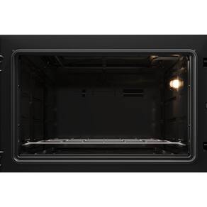 Forno elétrico de bancada com 50 litros de capacidade, sistema de aquecimento superior e inferior com grill, vidro duplo na porta, controle de temperatura de até 300°C, timer de 120 minutos com aviso sonoro, luz interior, acabamento interno Total Clean, resistências blindadas, isolamento térmico total e janela de exaustão.Forno autolimpante