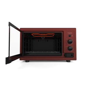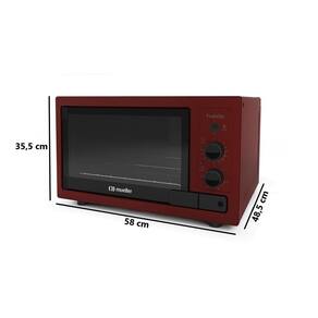 Forno Elétrico Mueller Fratello com capacidade de 44 litros, timer de 120 minutos, grill dourador, isolamento térmico e bandeja para resíduos. Possui design moderno na cor vermelha e distribui o calor de forma uniforme.Forno autolimpante