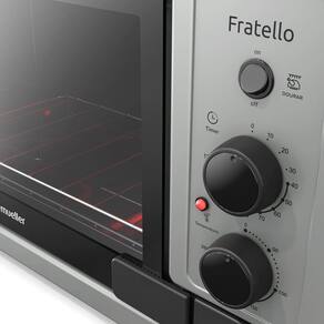Você que busca por um design moderno vai adorar o Forno Fratello Grafite da Mueller. Ele conta com grill, timer de até 120 minutos, interior com a tecnologia total clean que facilita a limpeza e, a capacidade de 44 litros, oferece espaço suficiente para os mais variados assados. A cor Grafite metalizada, desenvolvida pela Mueller, trás sofisticação e requinte, tendência no mercado e nas cozinhas modernas. Além disso, o Forno Fratello possui bandeja coletora de resíduos esmaltada que protege a resistência de baixo contra respingos de gordura, aumentando a vida útil do seu forno. O Forno Elétrico Fratello oferece eficiência para assar e dourar com baixo consumo de energia. Uma solução inteligente que garante mais economia para você.