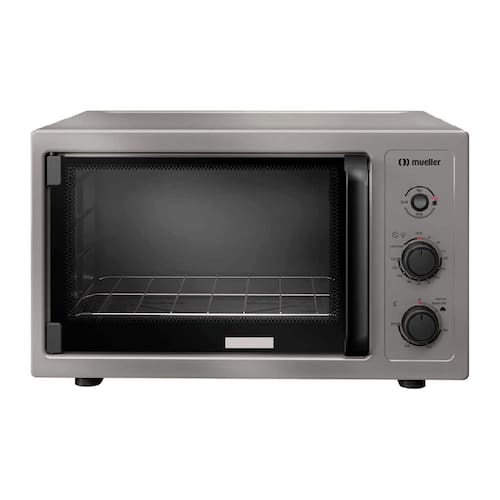 Forno elétrico de bancada Mueller MFB50B com capacidade de 50 litros, função grill, timer de 120 minutos, controle de temperatura de 50°C a 260°C e acabamento interior Total Clean.Forno autolimpante