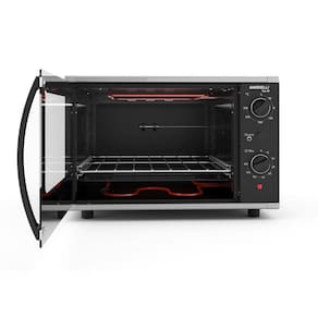 Forno elétrico de bancada com capacidade de 40 litros, timer de 120 minutos, termostato ajustável até 300°C, sistema Easy Clean e grill/dourador integrado.Forno autolimpante