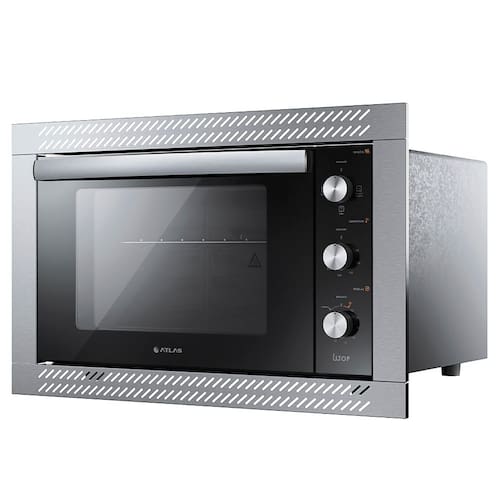 Forno elétrico de embutir Atlas U.Top com capacidade de 44 litros, limpa fácil, moldura em aço inox, timer com desligamento automático e isolamento térmico.Timer