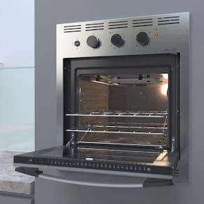 Forno elétrico de embutir com capacidade de 50 litros, controle de temperatura, função grill, timer, porta removível e revestimento Easy Clean.Timer