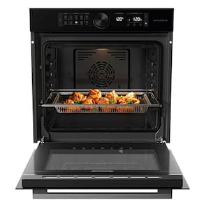 Forno elétrico de embutir com 80 litros de capacidade, função Air Fryer, convecção, timer programável, fermentação, grill e acabamento Limpa Fácil. Painel touch e analógico.Timer