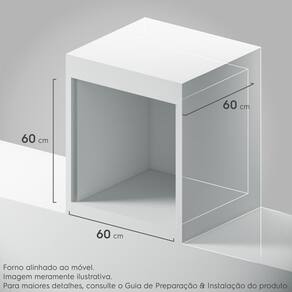 Fabricado em aco na cor preta, apresenta um design moderno que combina com qualquer estilo de decoracao. As dimensoes sao 59,6 cm de altura, 59,6 cm de largura e 61,3 cm de profundidade, sendo perfeito para instalacao em espacos planejados. Acompanha grade, permitindo o uso imediato apos a instalacao.