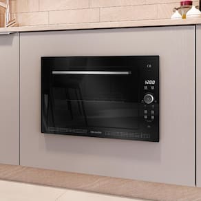 Forno Elétrico Digital de Embutir Mueller 50 L Preto (MFE50L): capacidade de 50 litros, painel digital touch com a função programar (liga e desliga automaticamente nos horários definidos), duas resistências de 900 W (superior e inferior), faixa de temperatura entre 100 C e 300 C, função grill, interior com esmalte Total Clean e frente em vidro com porta de vidro duplo para melhor retenção de calor.