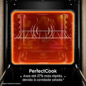 Com a tecnologia PerfectCook, o forno assa até 27¹ mais rápido devido à maior retenção de calor no interior do forno selado. Isso significa que seus pratos serão preparados de forma mais eficiente, economizando tempo e energia.
