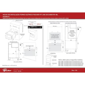 Forno Elétrico de Embutir Fischer 48 Litros Inox Fit Line com timer de 120 minutos, controle independente das resistências, porta com vidro duplo e acabamento interno autolimpante.Timer