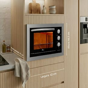 O Forno Elétrico de Embutir Fischer Fit Line 48 Litros combina tecnologia, desempenho e acabamento sofisticado para facilitar o preparo das suas receitas. Com frontal em inox escovado e estrutura robusta, ele valoriza o ambiente e oferece excelente durabilidade.