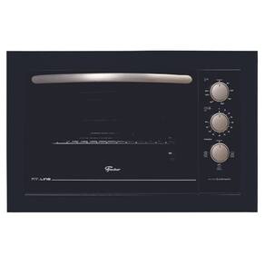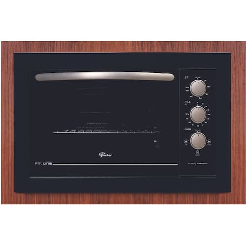 Forno Elétrico de Embutir Fischer Fit Line 48L com timer de até 120 minutos, controle de temperatura de 50°C a 320°C, corpo autolimpante, porta com vidro duplo, isolamento térmico total e bandeja para resíduos removível.Timer