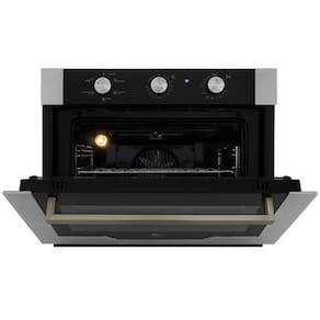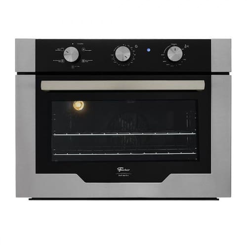 Forno elétrico de embutir Fischer Infinity com capacidade de 50 litros, função turbo, timer de 120 minutos, temperatura ajustável de 50°C a 300°C e corpo interno esmaltado easy clean.Timer