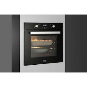 Forno elétrico de embutir Fischer Infinity Touch com capacidade de 82 litros, potência de 2790W, display digital, porta com vidro triplo, timer touch de até 10 horas, função turbo convecção e 5 funções (lâmpada, descongelar, turbo, grill e turbo grill).Timer